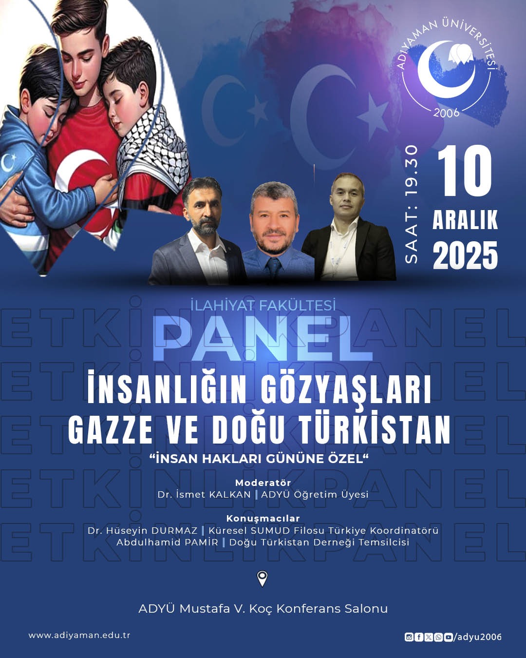 Üniversitemiz İyiliğin Geleceği Öğrenci Topluluğu tarafından, 10 Aralık Dünya İnsan Hakları Günü münasebetiyle “İnsanlığın Gözyaşları; Gazze ve Doğu Türkistan” başlıklı panel düzenlendi.