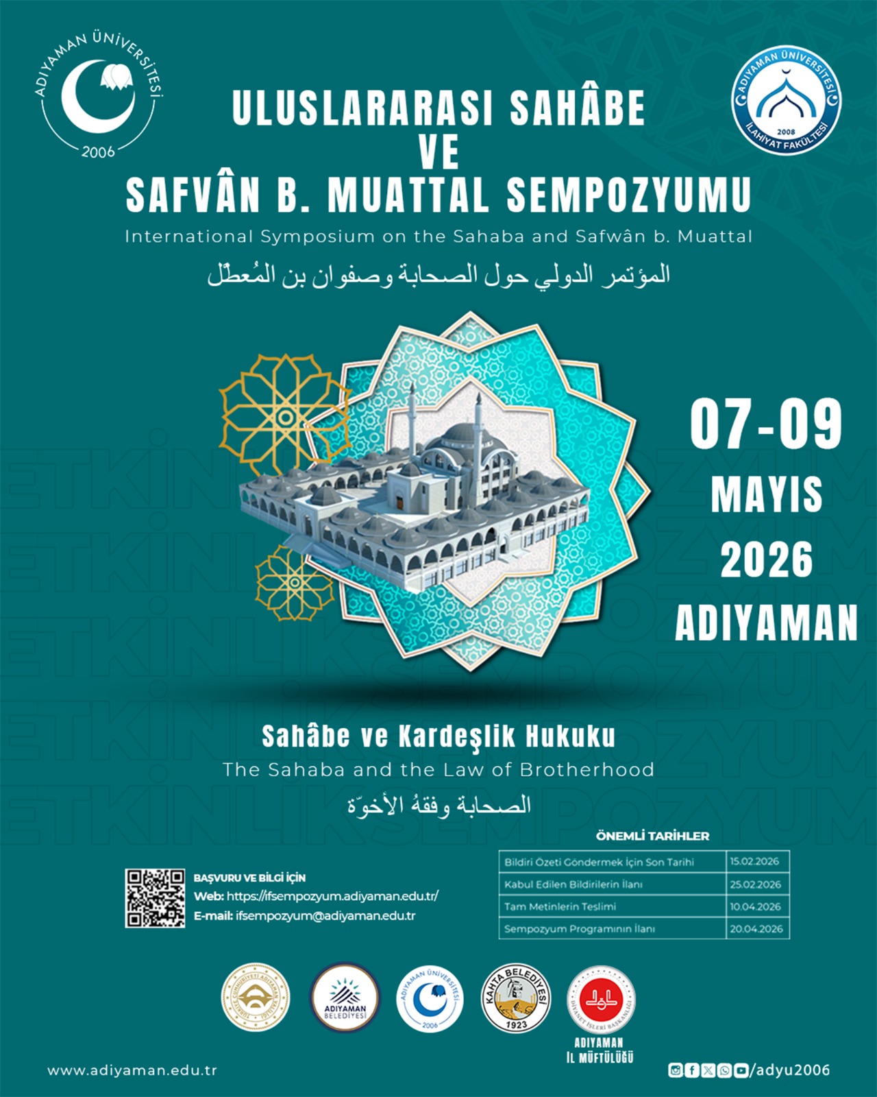 Bu çerçevede Adıyaman Üniversitesi Rektörlüğünün ev sahipliğinde, Adıyaman Üniversitesi İlahiyat Fakültesi tarafından düzenlenecek olan Uluslararası Sahâbe ve Safvân b. Muattal Sempozyumu, “Sahâbe ve Kardeşlik Hukuku” temasıyla 7–9 Mayıs 2026 tarihlerinde gerçekleştirilecektir. Adıyaman’da kabri bulunan Safvân b. Muattal’ın örnek şahsiyeti ve iffet–izzet anlayışı sempozyumun özel odak noktalarından biri olacaktır.